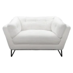 The modern design and clean lines of the Evelyn chair make it the perfect accent armchair for you living space or bedroom. Upholstered in soft boucle fabric and made with a sturdy metal frame, the Evelyn chair is a comfortable seat to relax in.